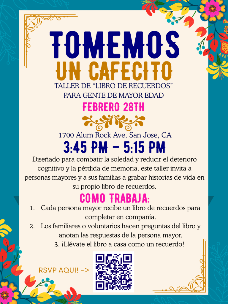 Tomemos un Cafecito—an expansion of the Let’s Talk Story Club nonprofit to serve Latino seniors—recently reached an exciting milestone with its very first Senior Memory Book Workshop on February 28 at the School of Arts and Culture at Mexican Heritage Plaza in San Jose, CA.